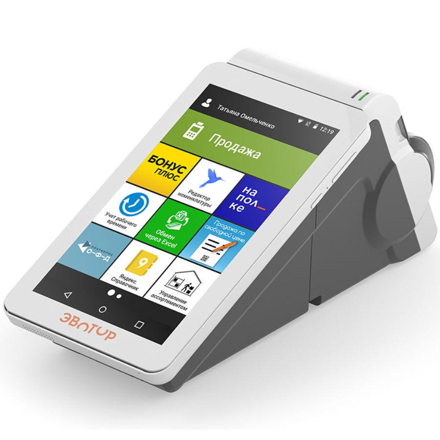 Эвотор 7.2 — одна из самых доступных по цене моделей смарт-терминалов. Подойдёт магазинам у дома, кафе, сервисам по ремонту, химчисткам, прокату, ломбардам.