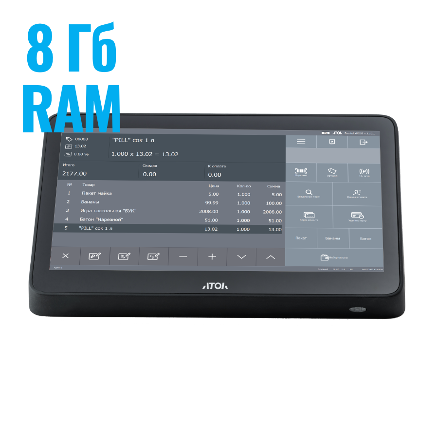 Работа с самым популярным торговым ПО. Универсальная платформа Intel позволяет установить на POS-терминал любую популярную программу для розничной торговли, общественного питания, сферы услуг: Frontol, iiko, СБИС, Контур.Маркет, R-Keeper, 1C, ТРАКТИРЪ, Tillypad, Game-Keeper, UCS-Премьера и др.