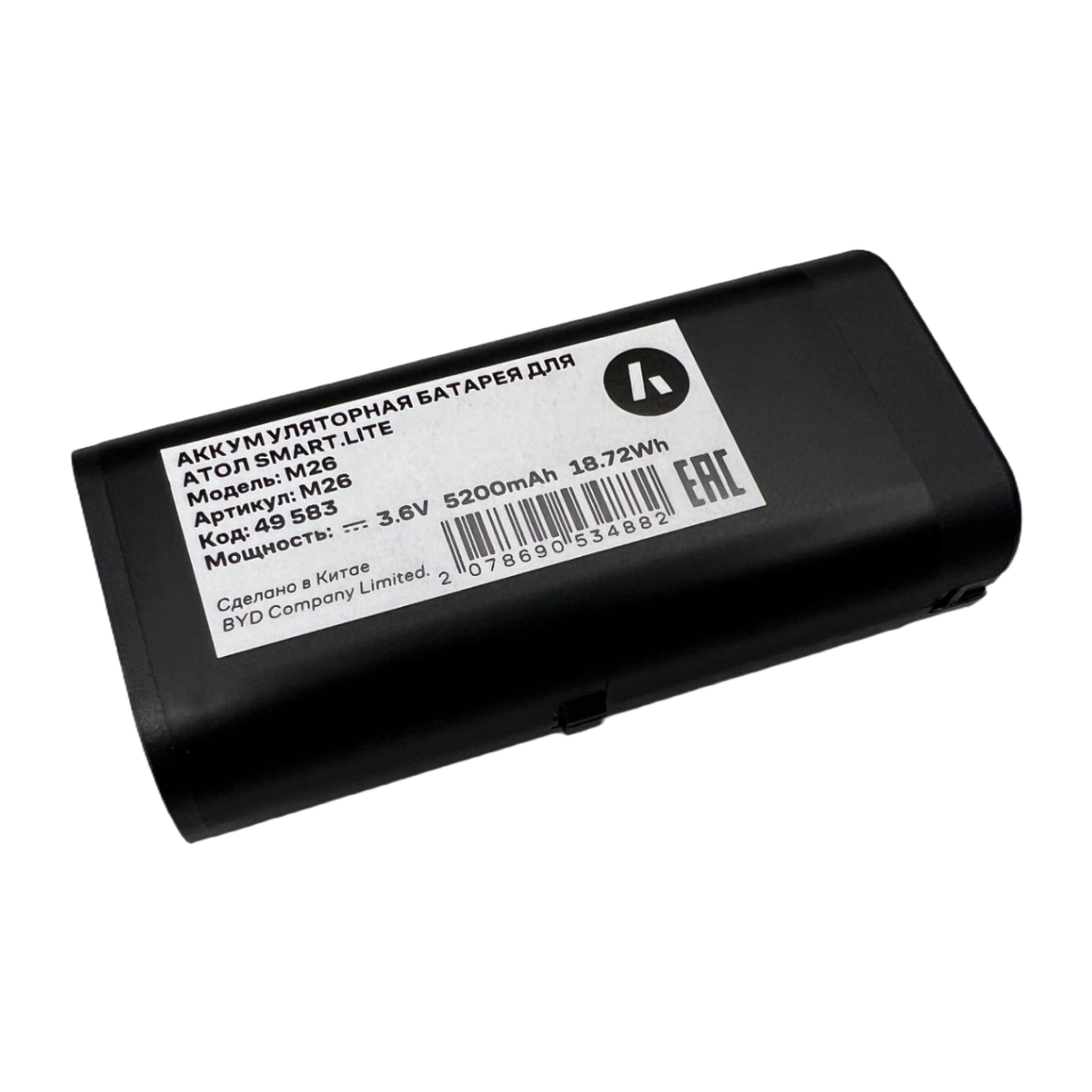 Аккумулятор для терминала сбора данных АТОЛ Smart.Lite имеет повышенную емкость - 5200 мАч. Его заряда хватает для работы без подзарядки на протяжении целой рабочей смены или даже дольше, в зависимости от интенсивности эксплуатации.